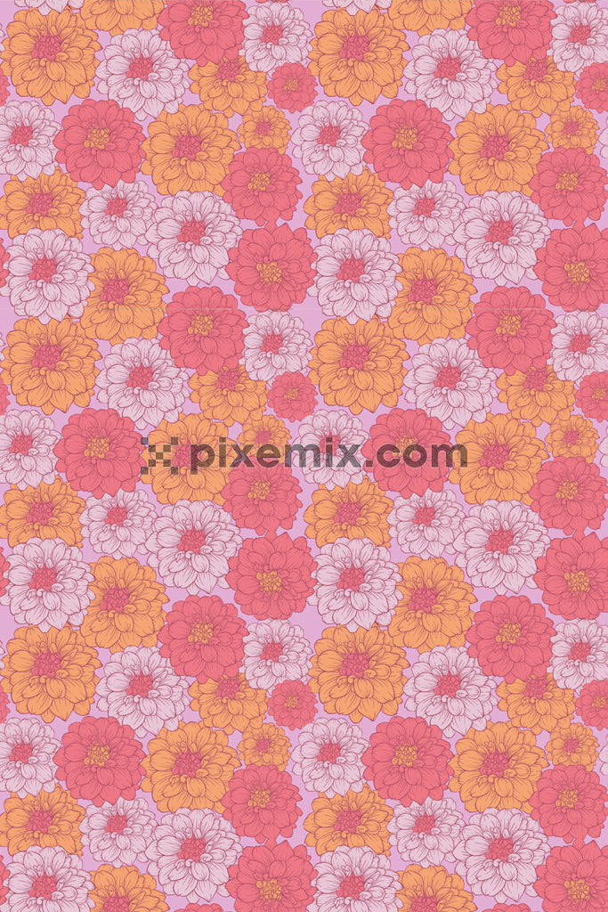 Pop art inspired florals product graphic with seamless repeat pattern
