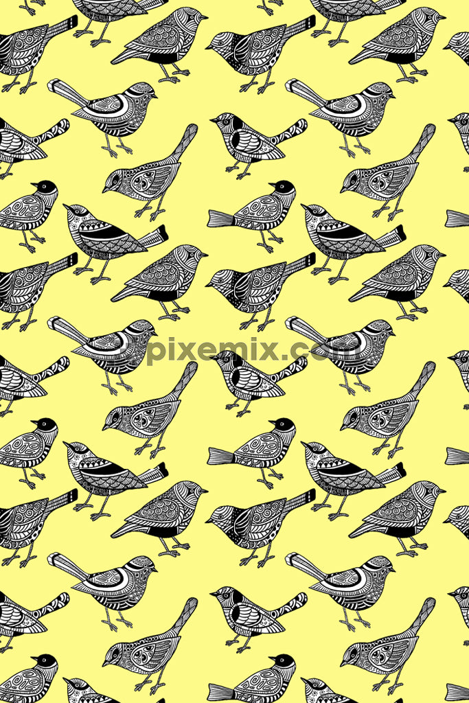 Ethnic birds product graphic with seamless repeat pattern