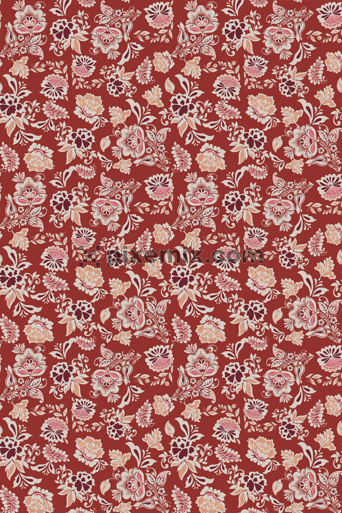 Paisley florals product graphic with seamless repeat pattern/span>