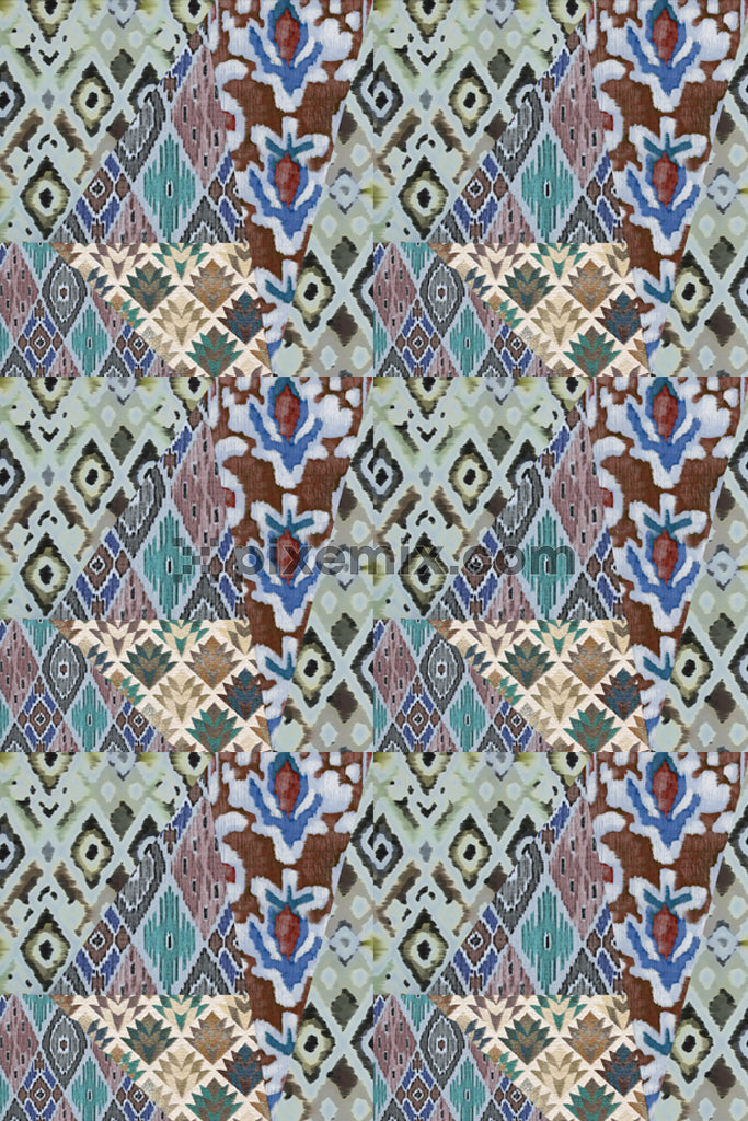 Tie-dye art inspired paisley art product graphic with seamless repeat pattern