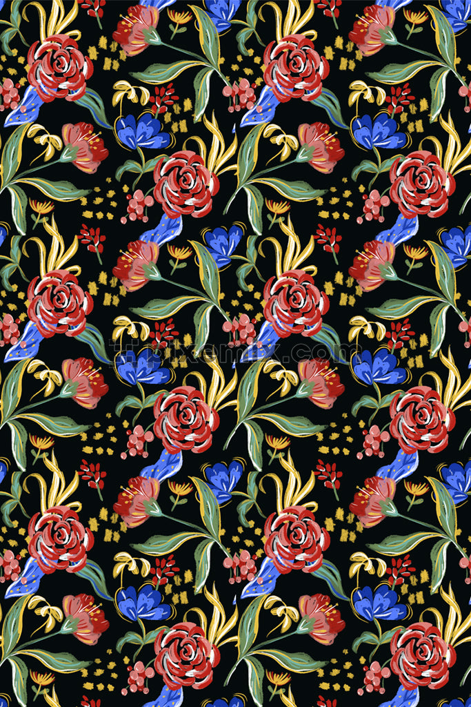 Watercolor florals and leaves product graphic with seamless repeat pattern