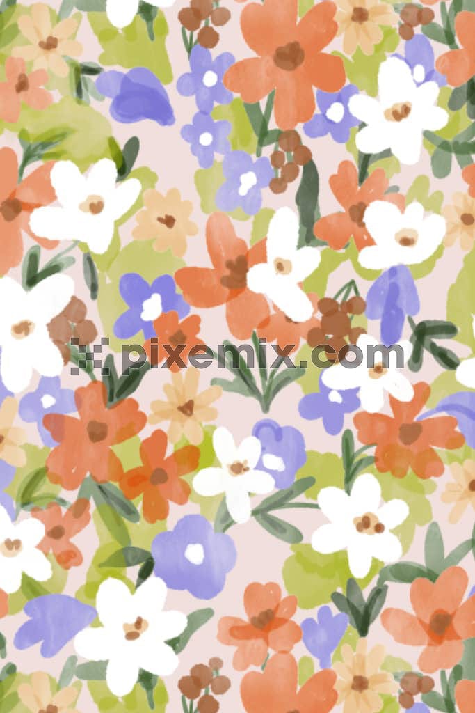 Watercolor florals and leaves product graphic with seamless repeat pattern