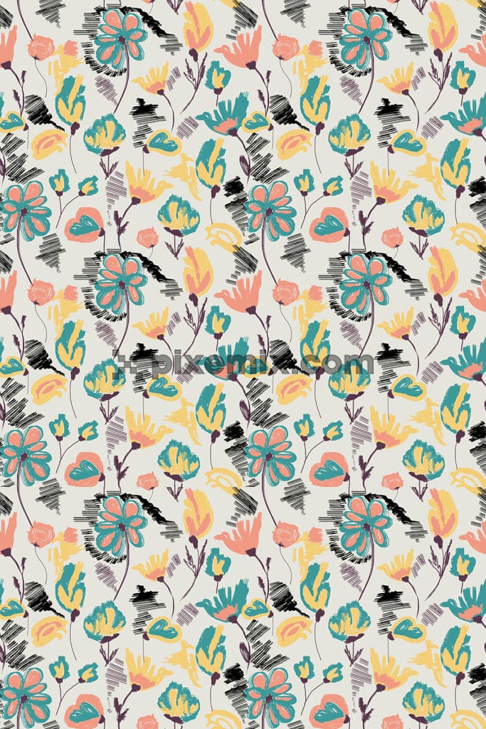 Watercolor art-inspired hand-drawn florals come together in a delightful product graphic with a seamless repeat pattern