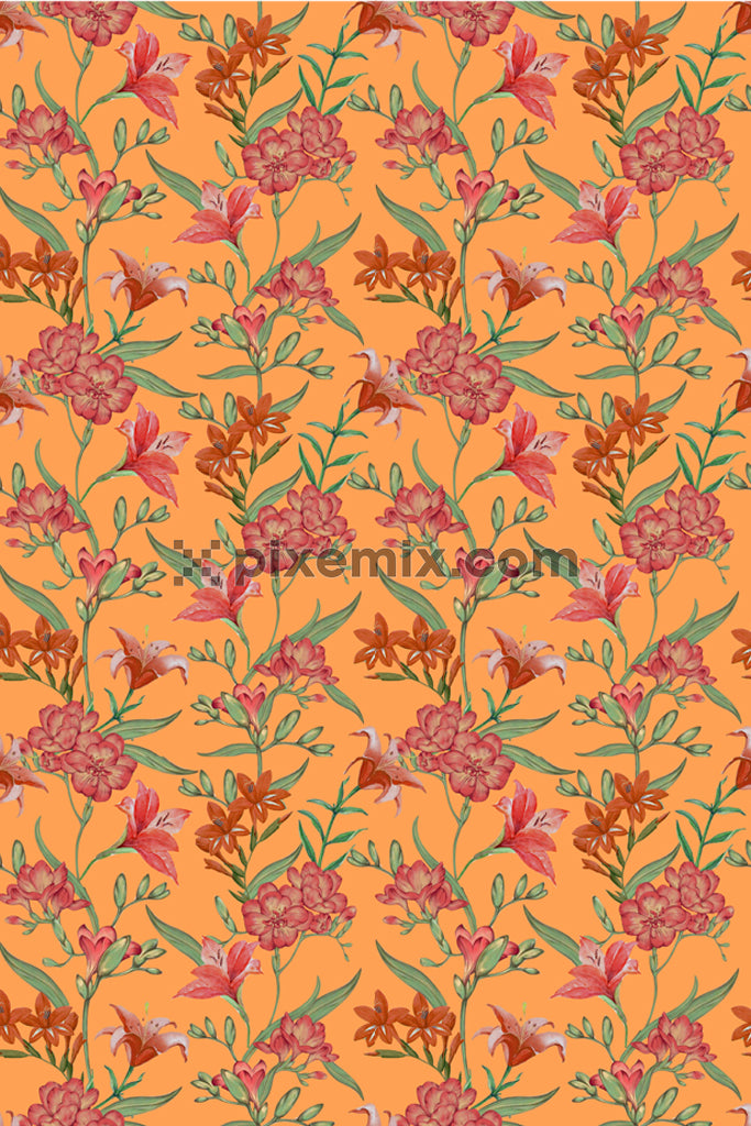 Watercolor florals and leaves product graphic with seamless repeat pattern