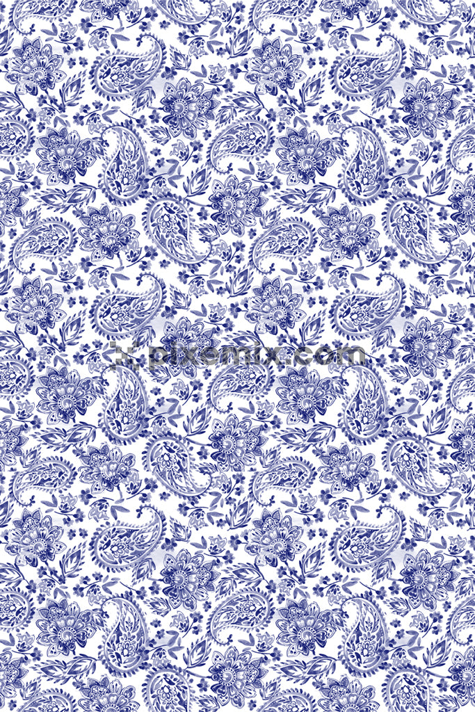 Watercolor paisley art product graphic with seamless repeat pattern