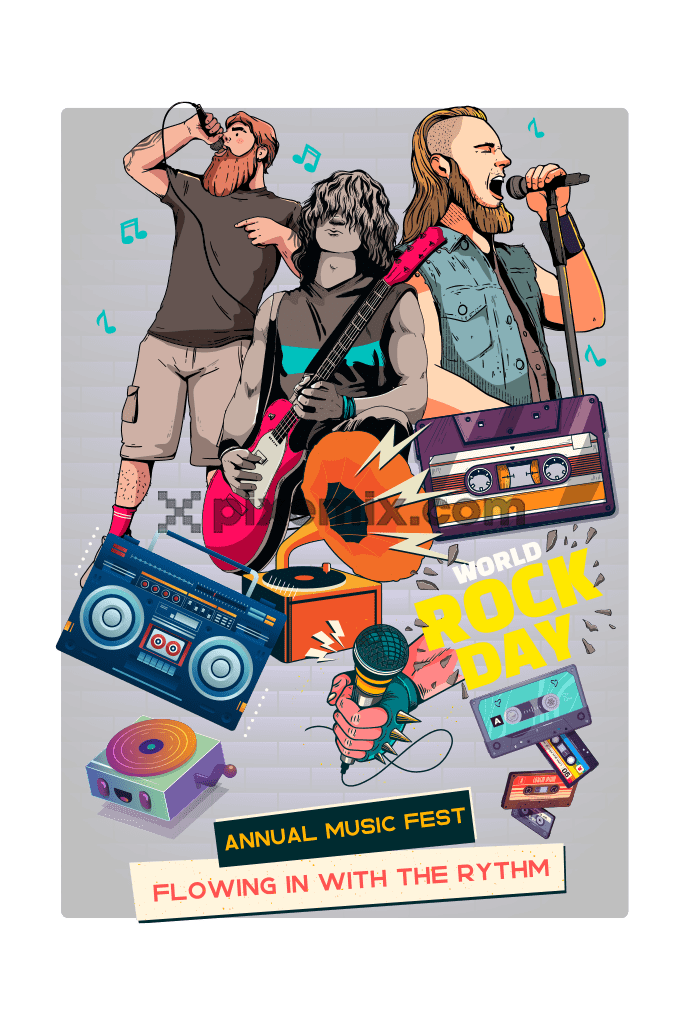PDF, EPS, AI- 12" x 18"-300dpi-no_repeat-no_editable_layered_photoshop_psd-editable_vector_pdf_or_eps-no_fontsWORLD ROCK DAY 5209