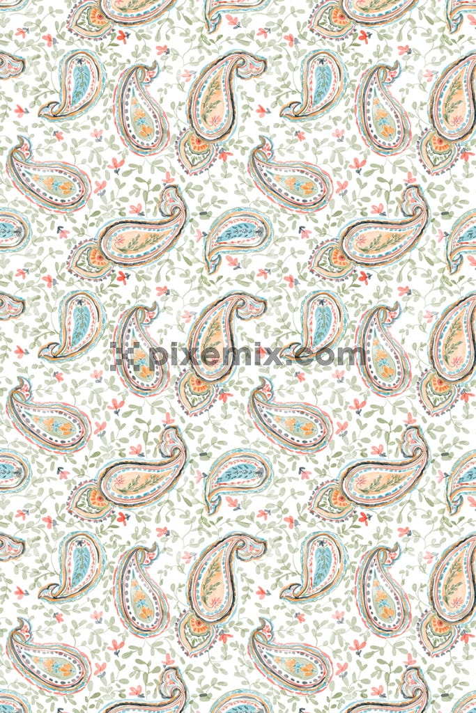 A hand made illustration featuring Watercolour art inspired hand drawn paisley print with vibrant colours.