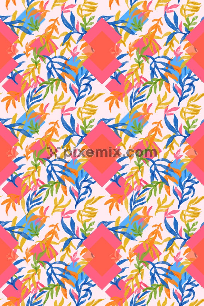 Hand made illustration featuring botanical illustration in watercolour effect with floral and leaves pattern.