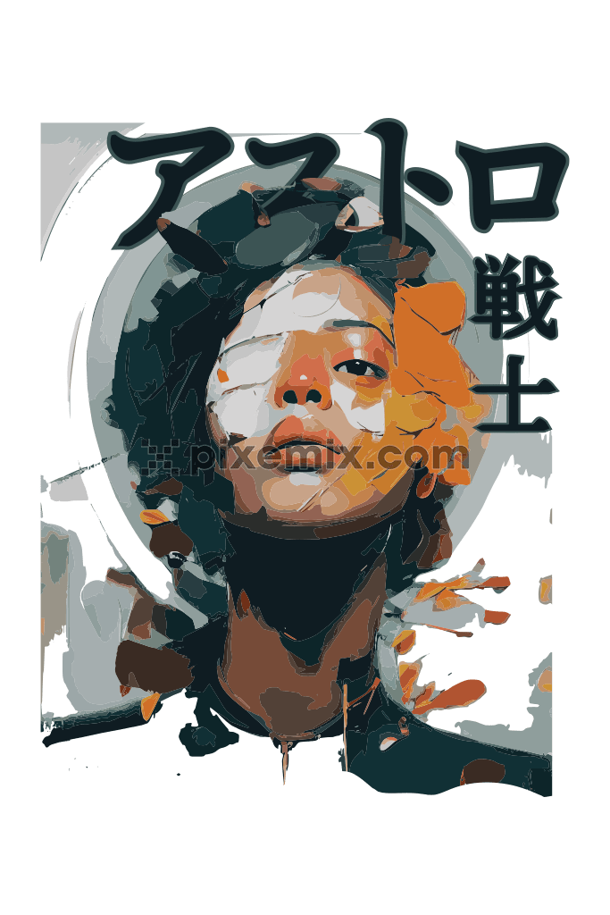A hand drawn product graphic featuring cool racer themed inspired digital biker with flag details in watercolour effect.