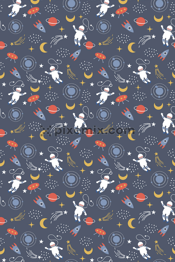 Space inspired cute icon product graphic with seamless repeat pattern