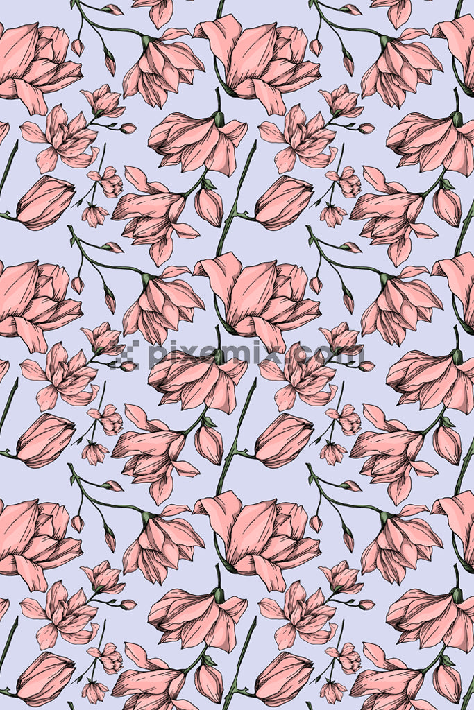 Digital floral product graphic with seamless repeat pattern