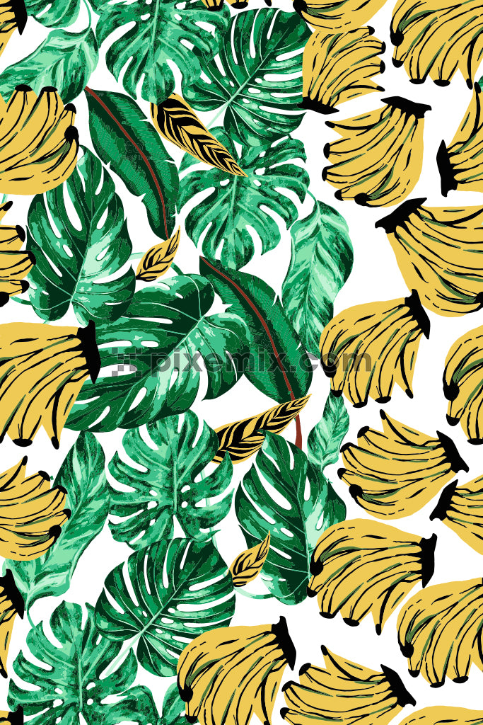 Banana & tropical leaves art product graphic with seamless repeat pattern