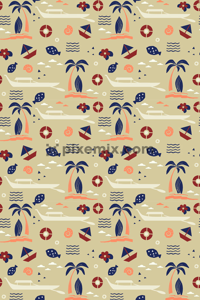 Doodleart inspired nautical beach product graphic with seamless repeat pattern