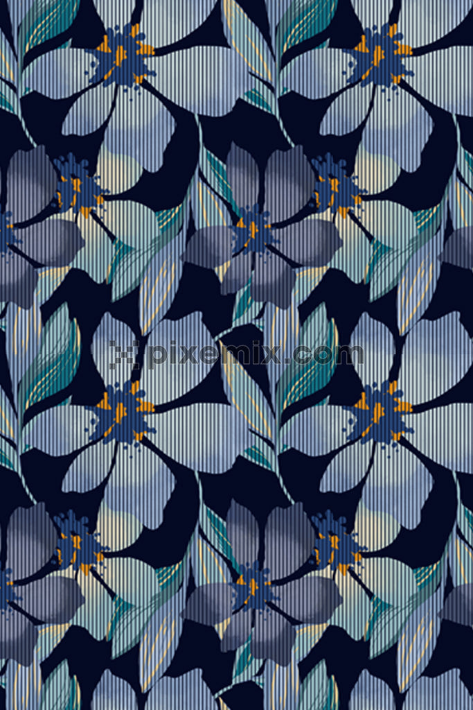 Watercolor florals & lines product graphic with seamless repeat pattern