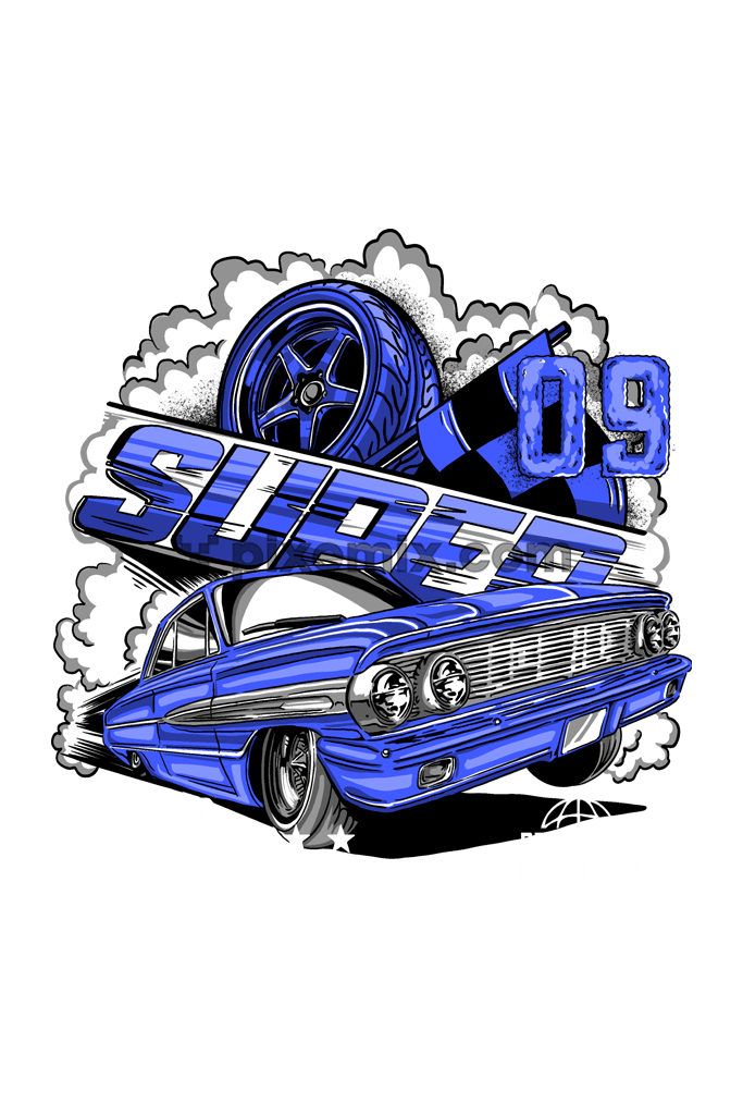 Hand-drawn vintage car with typography product graphic
