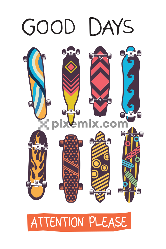 Skate boards with typography product graphic