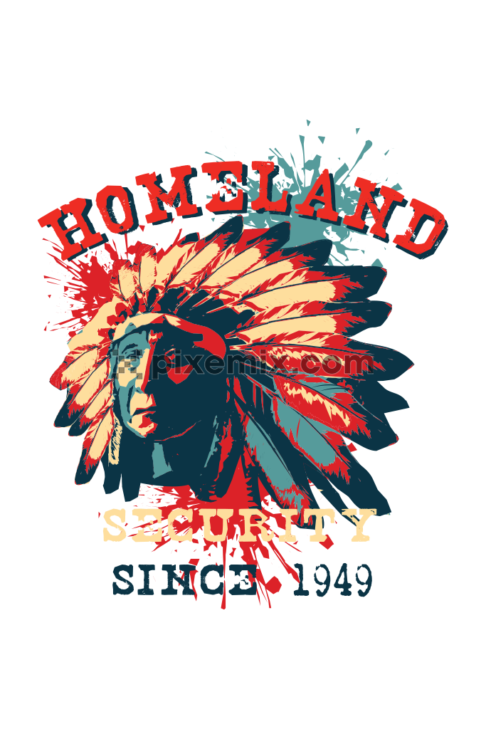 Vintage native american tribal man illustration product graphic