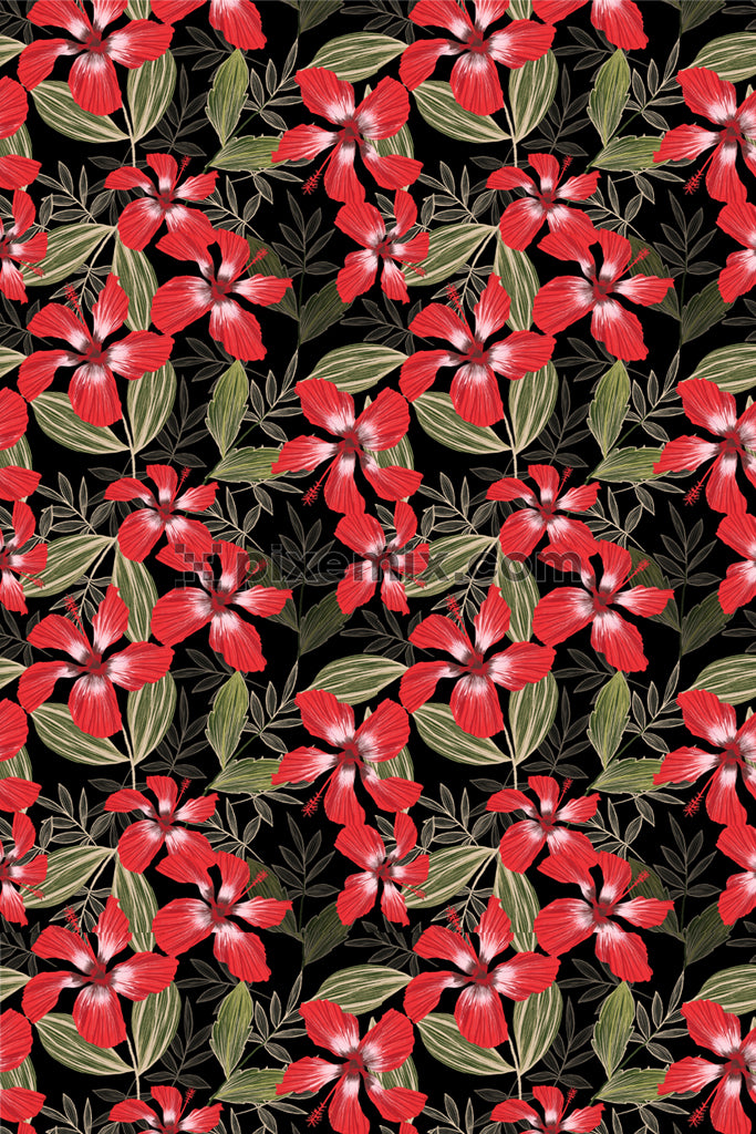 Tropical compositions with hibiscus flowers product graphic with seamless repeat pattern