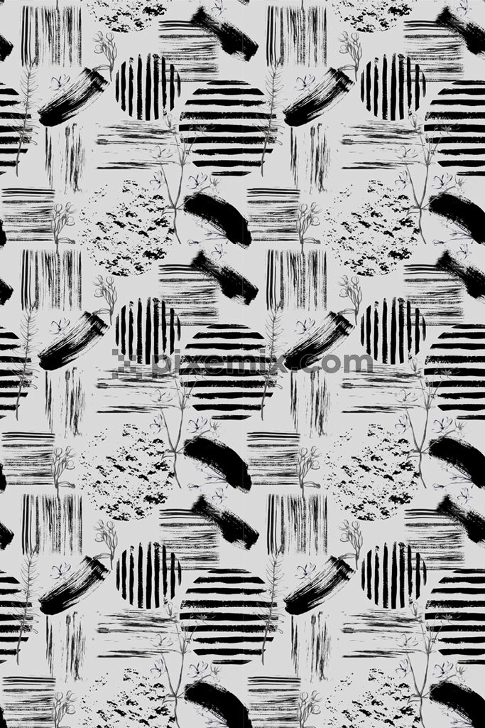 Pinselstriche und florale Produktgrafiken mit nahtlos wiederholtem Muster