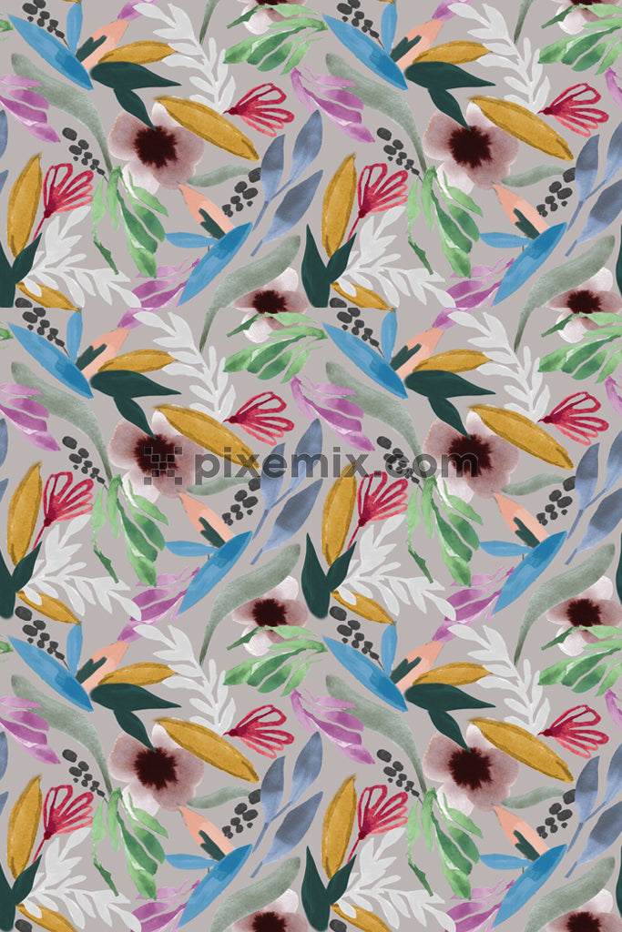Abstrakte Aquarell-Blumen und Blätter Produktgrafik mit nahtlosem Wiederholungsmuster