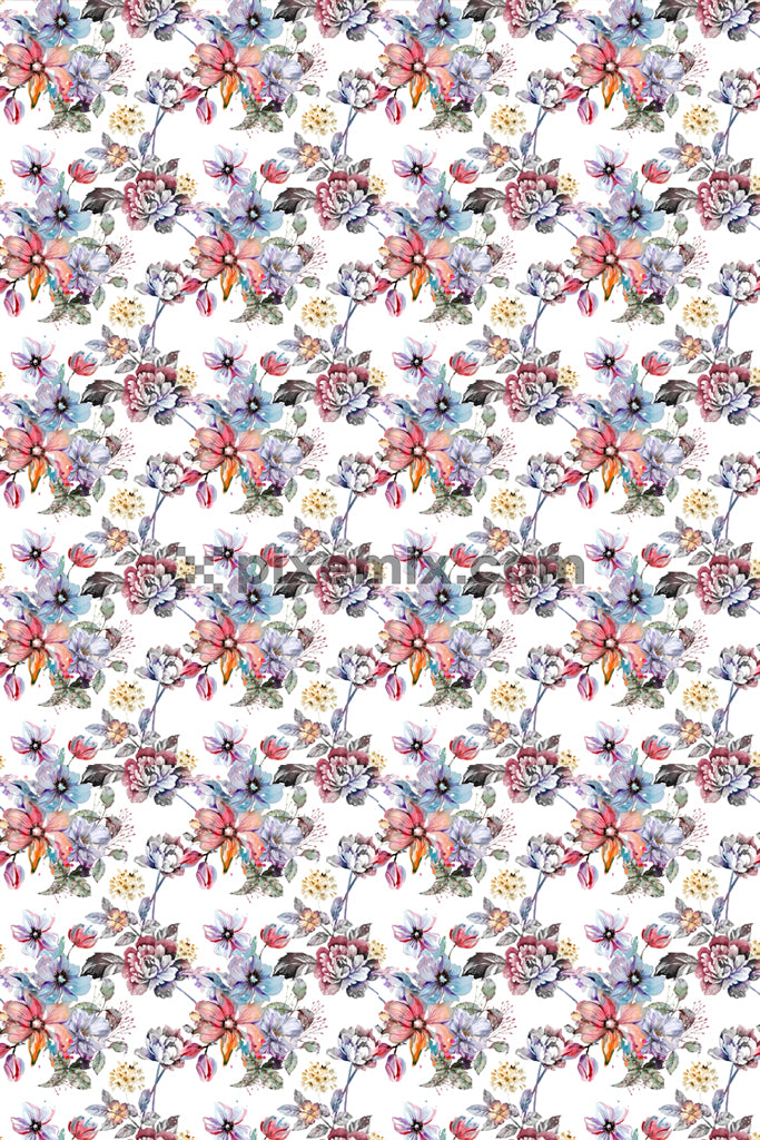 Produktgrafik mit Blumen und Blättern in Aquarell mit nahtlosem Wiederholungsmuster