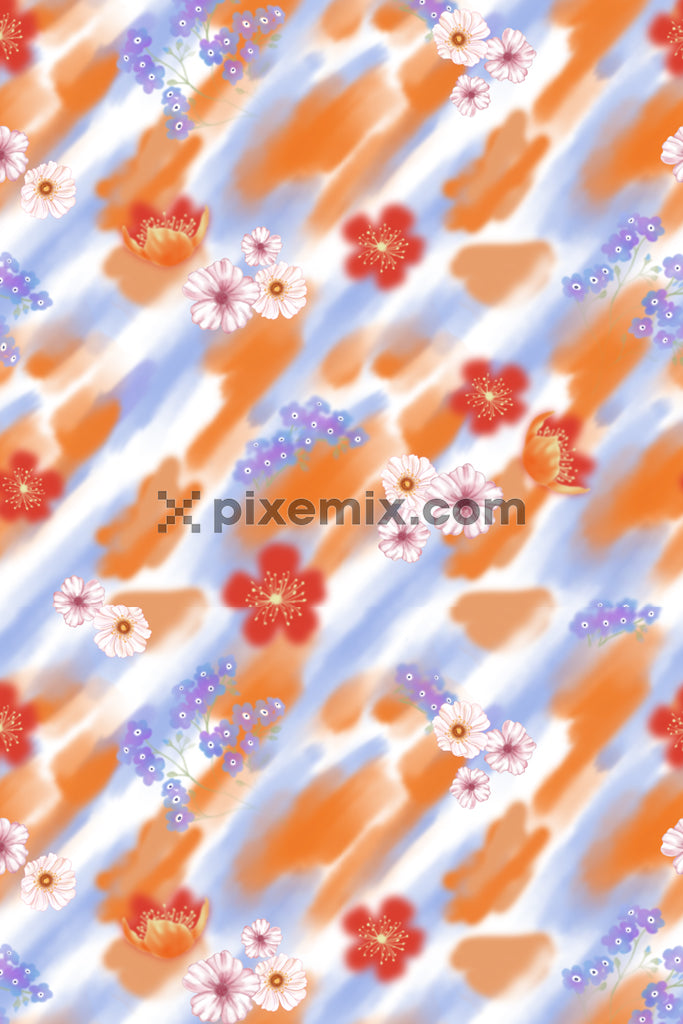 Modernes Blumendesign mit abstraktem Pinselstrich-Produktgrafik-nahtlosem Wiederholungsmuster.