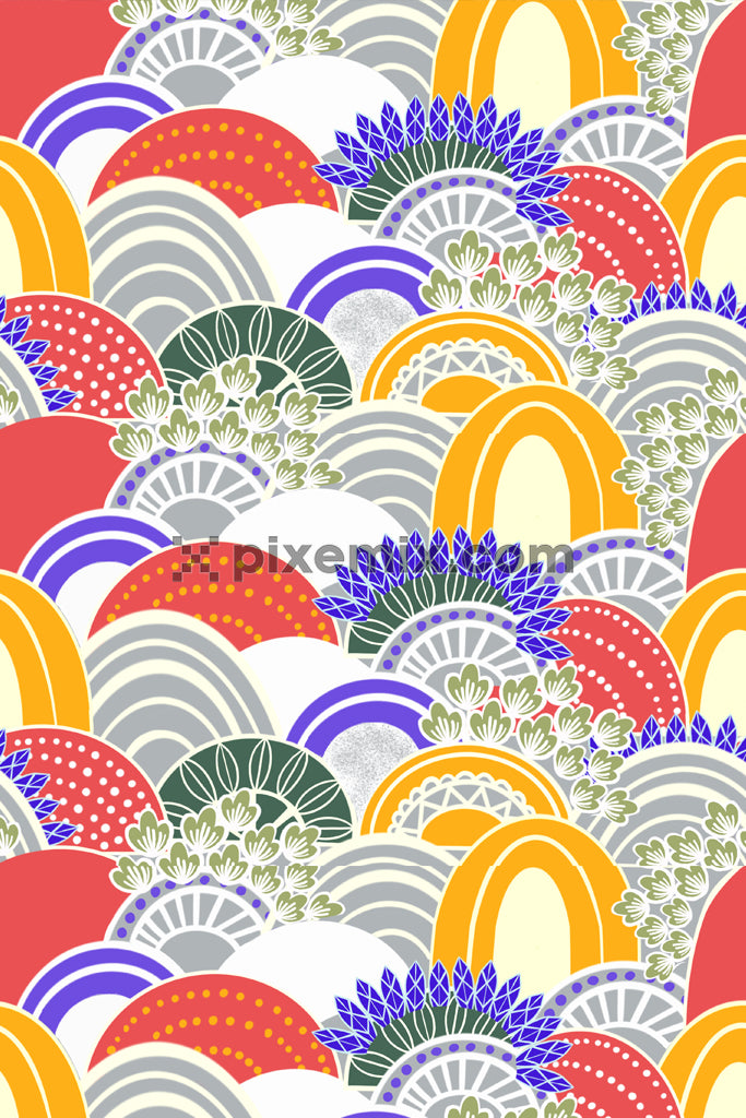 Muster abstrakter Formen mit Linien, Punkten und geometrischen Formen, Produktgrafik mit nahtlos wiederholtem Muster