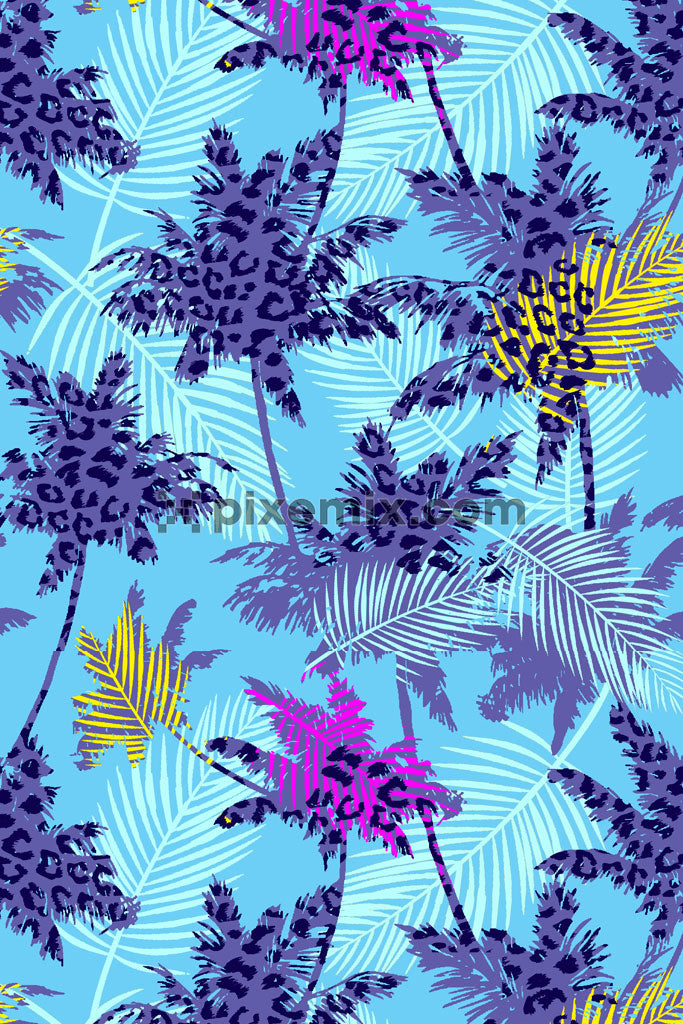 Hawaiianisch inspirierte Doodle-Belichtungsgrafik mit Pflaumenbaum und nahtlosem Wiederholungsmuster