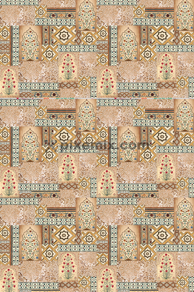 Ethnische Kunst und florale Produktgrafik mit nahtlosem Wiederholungsmuster