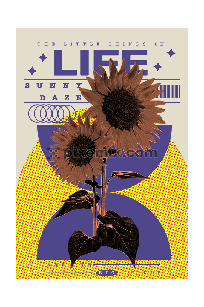 Monochrome Sonnenblume mit Typografie-Produktgrafik