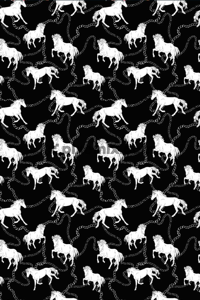 Pferde um Kettenproduktgrafik mit nahtlosem Wiederholungsmuster