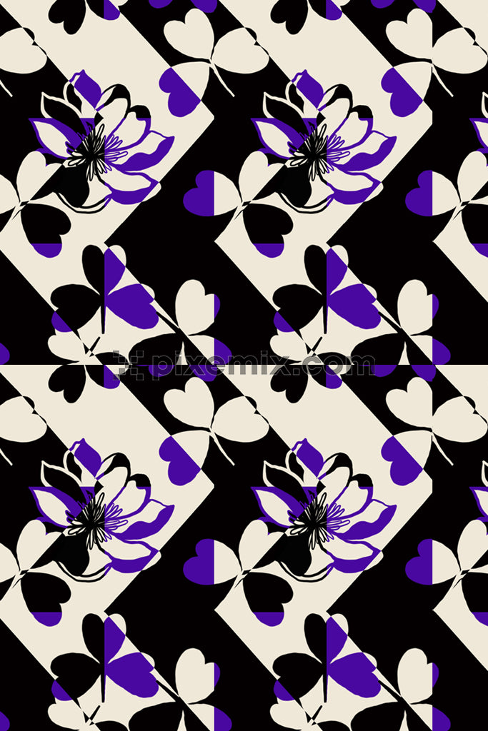 Abstrakte negative und positive Blumenkunst-Produktgrafik mit nahtlosem Wiederholungsmuster