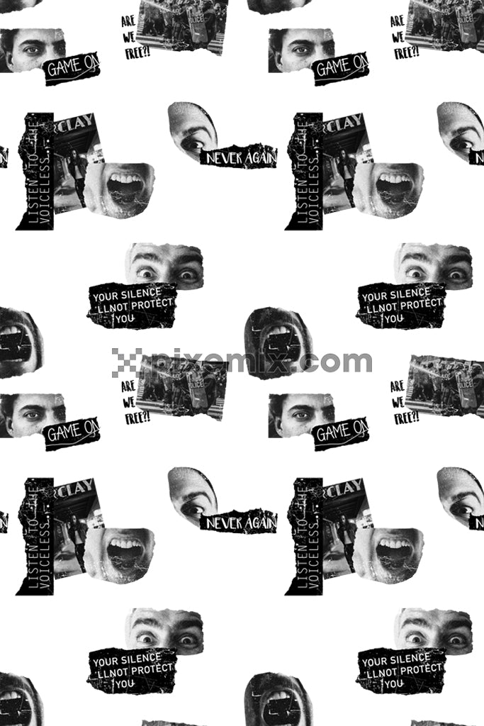 Monochrome Gesichtscollage-Produktgrafik mit nahtlosem Wiederholungsmuster