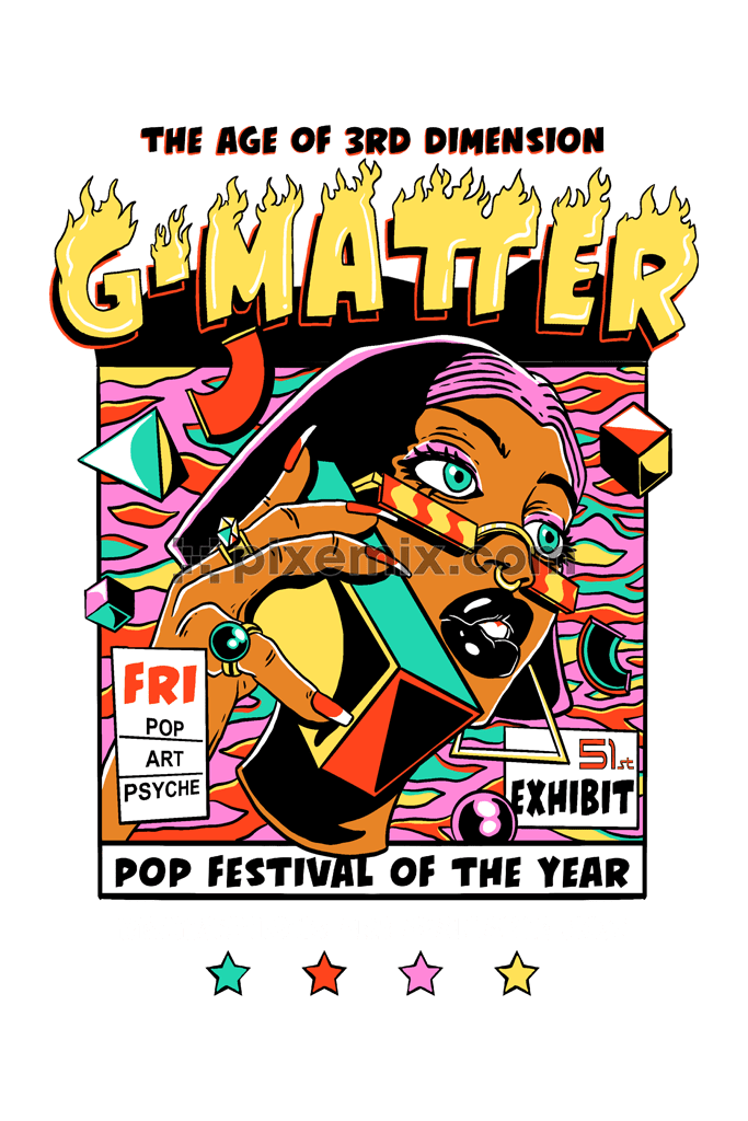 Eine von der Pop-Art inspirierte Illustration mit einer Produktgrafik mit Swag-Charakter