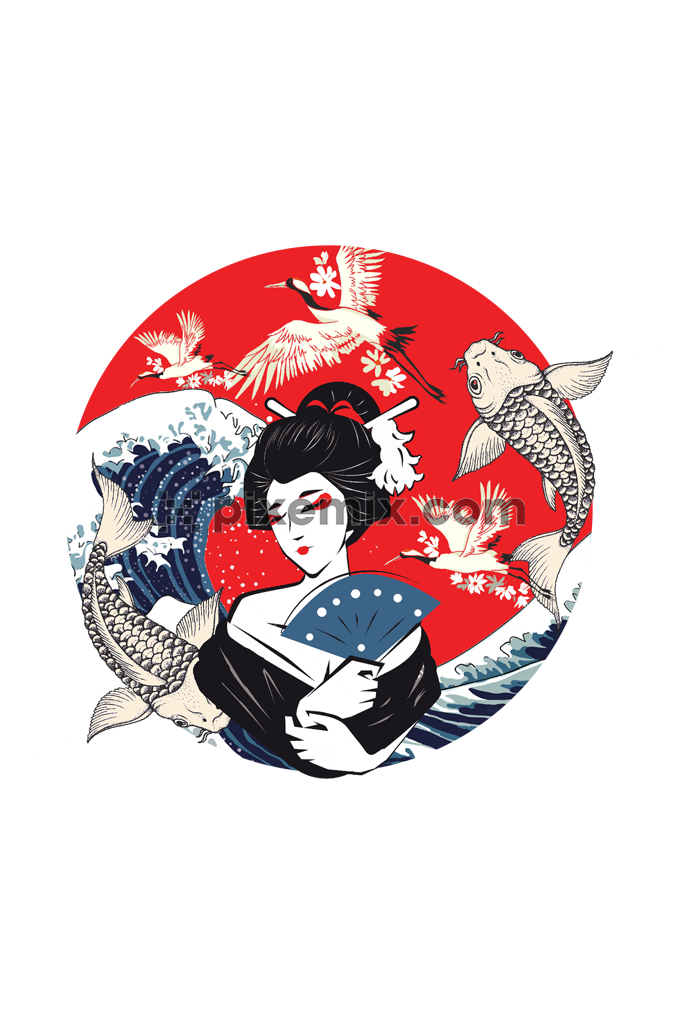 Von der orientalischen Kunst inspirierte Produktgrafiken japanischer Geishas und Koi-Fische