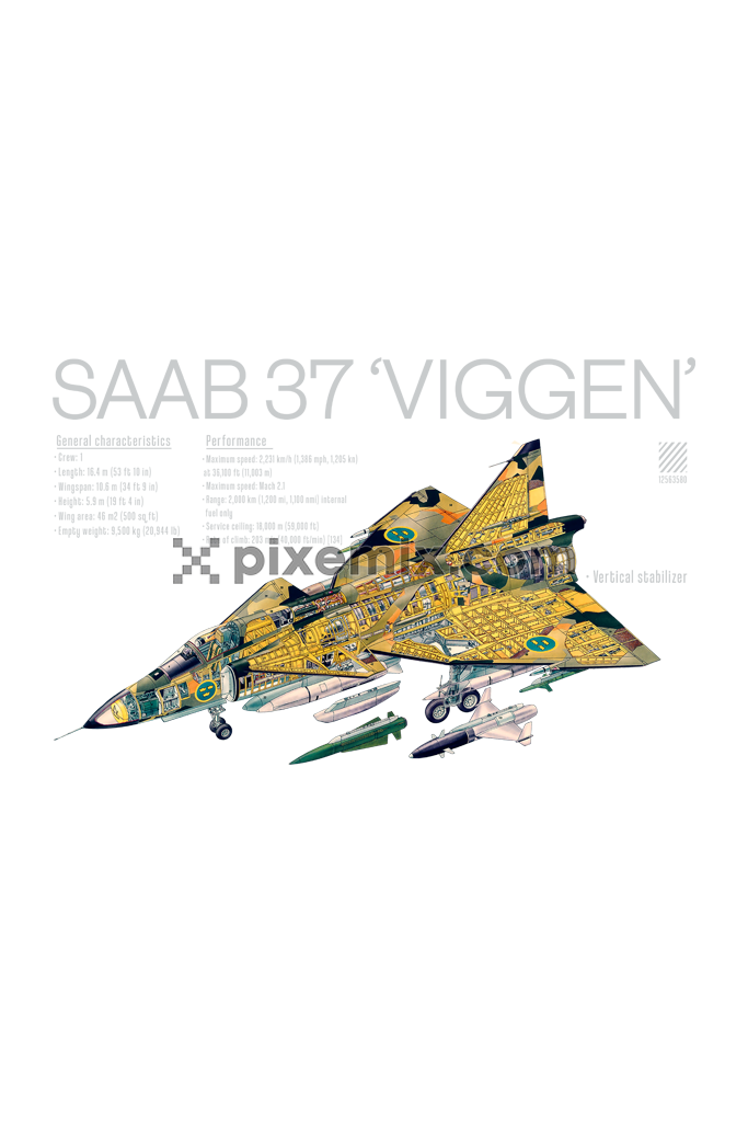 Produktgrafik zu den Eigenschaften des Viggen-Flugzeugs
