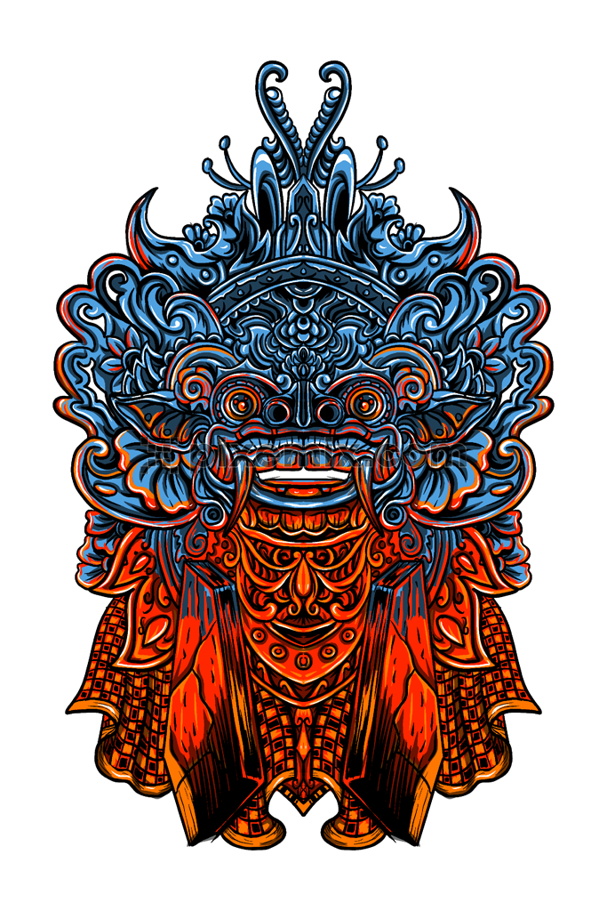 Von Stammeskunst inspirierte Produktgrafik der Barong-Maske