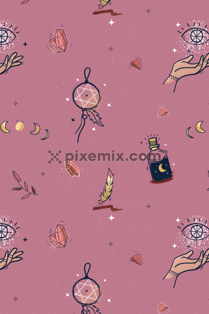 Boho-inspirierte Symbolmuster-Produktgrafik mit nahtloser Wiederholung