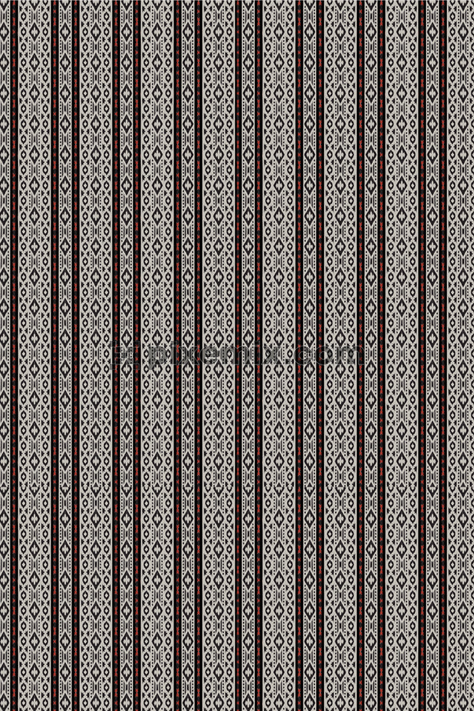 Von Ikkat inspirierte Produktgrafik mit Stammesmotiv und nahtlos wiederholtem Muster