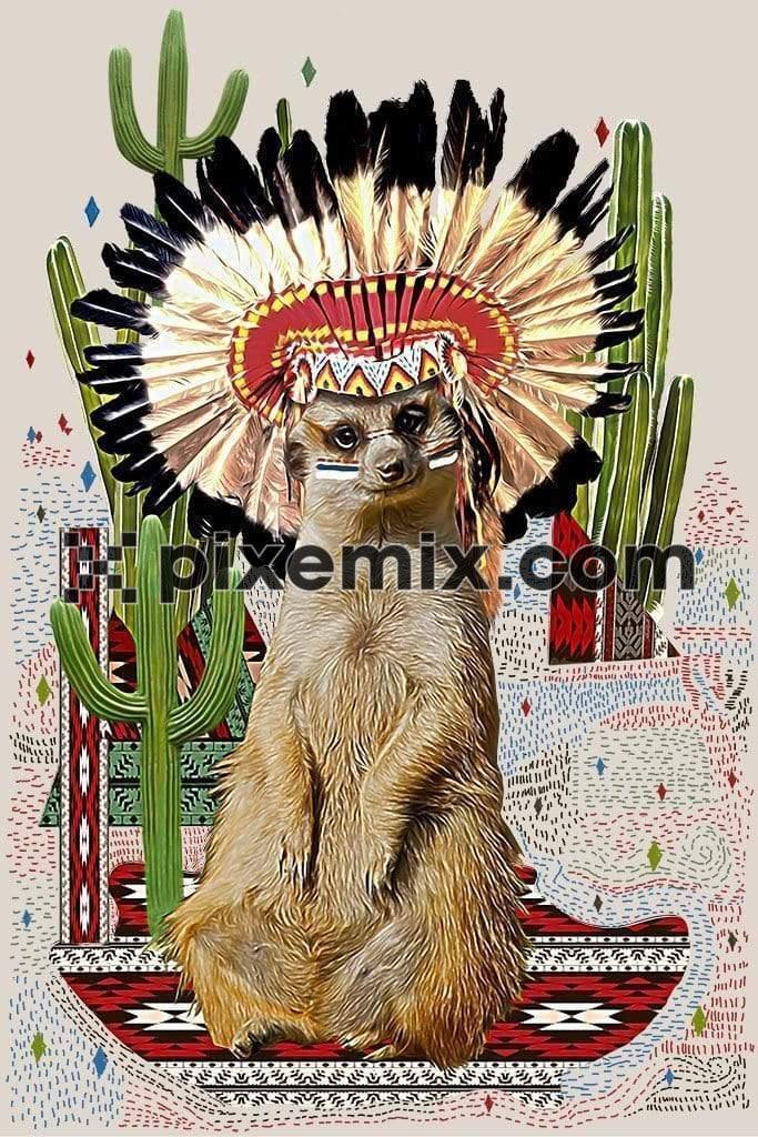 Produktgrafik mit Erdmännchen im Bohemian-Stil