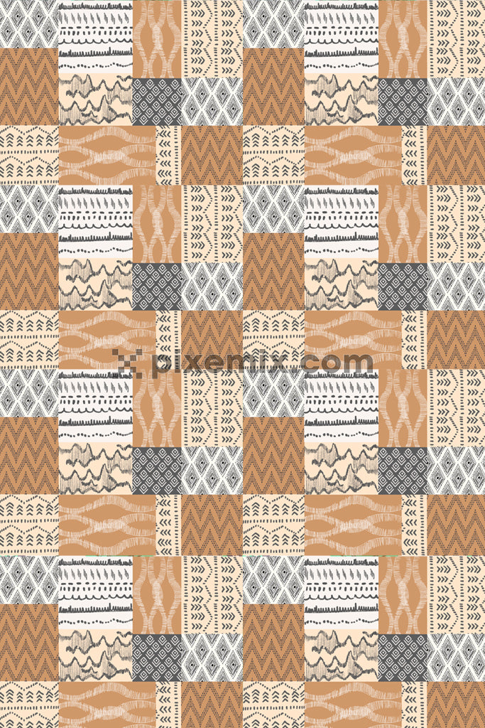 Mix & Match erdige Stammesmotive Produktgrafik mit nahtlos wiederholtem Muster