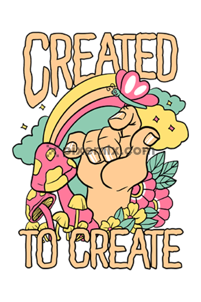 Von Doodle Art inspirierte Produktgrafik mit Hand und Schmetterling
