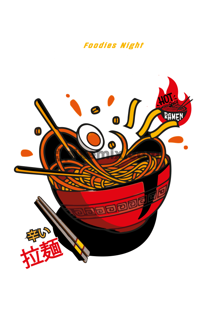 Cartoon-Nudelschüssel und typografische Produktgrafik