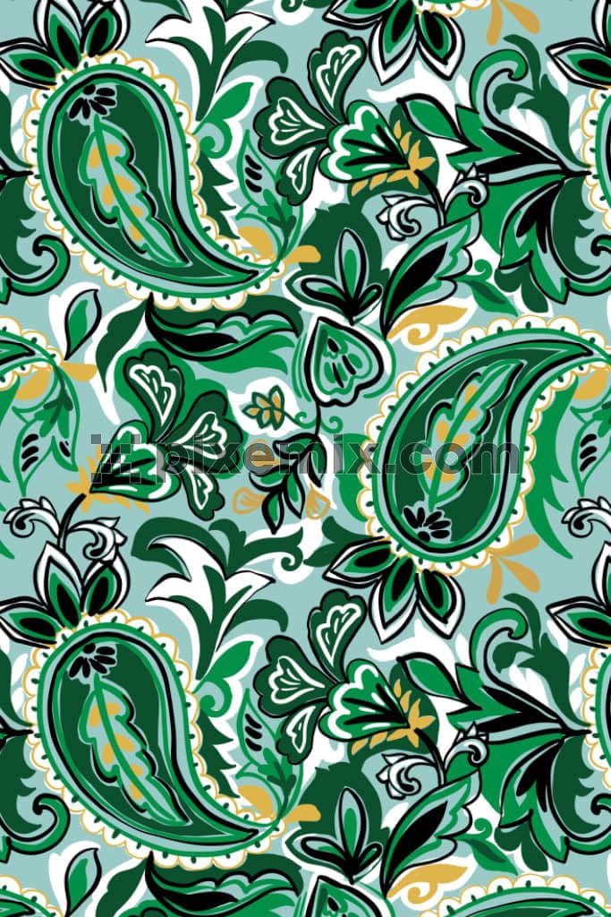 Handgezeichnete Paisley-Produktgrafik mit nahtlosem Wiederholungsmuster