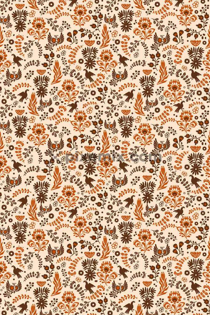 Vektorflora- und Vogelproduktgrafik mit nahtlosem Wiederholungsmuster