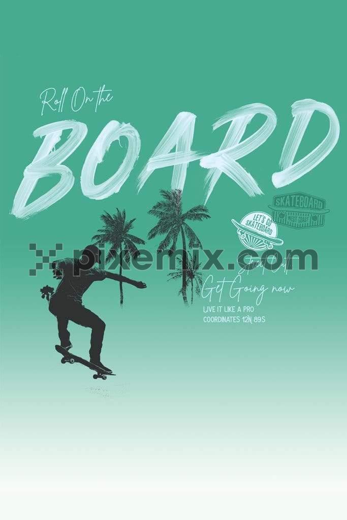 Produktgrafik mit Skateboarding-Farbverlauf und gebürsteter Typografie