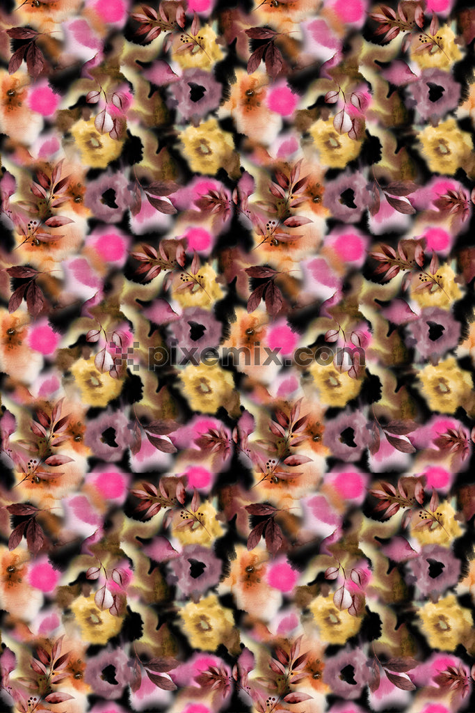 Aquarellstrich und Blätter-Produktgrafik mit nahtlosem Wiederholungsmuster