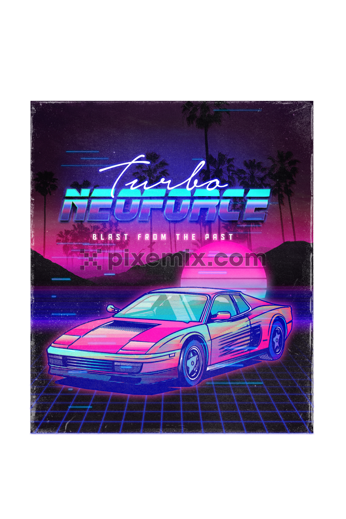 Trendige Produktgrafik für Autos im Retro-Techno-Stil