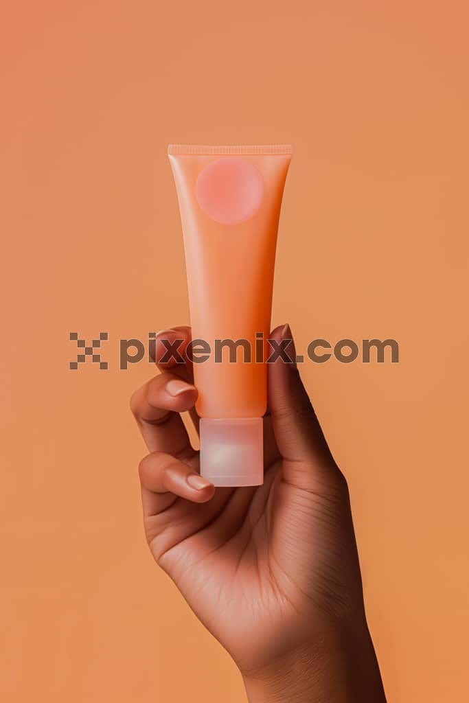 Das Bild zeigt die Hand einer schwarzen Frau, die eine orangefarbene Cremetube hält.
