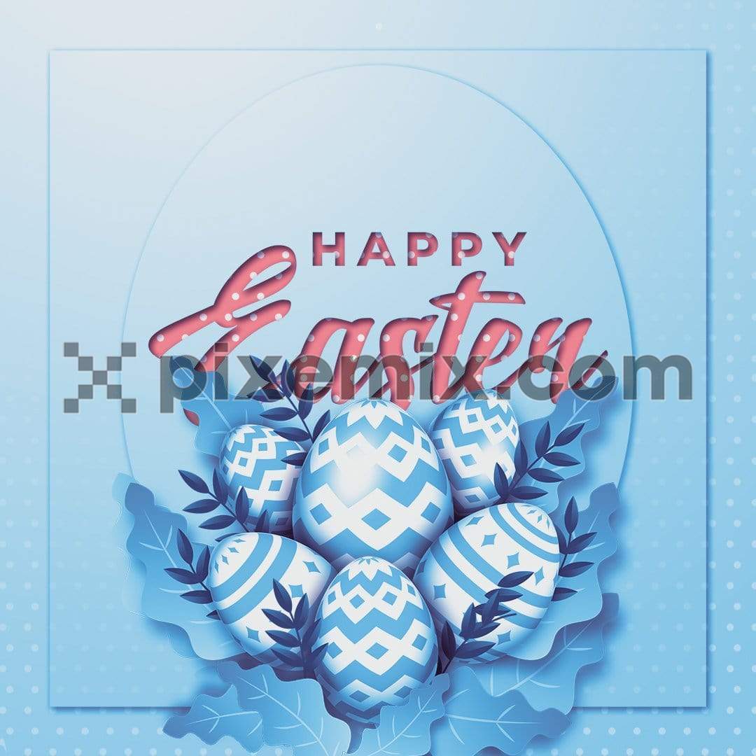 Dekorierte monochrome realistische Eier mit Tippfehler und hinterlässt einen statischen Social-Media-Beitrag